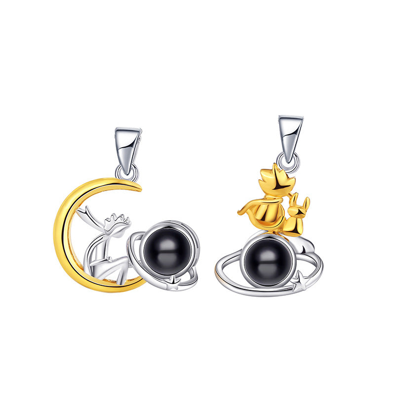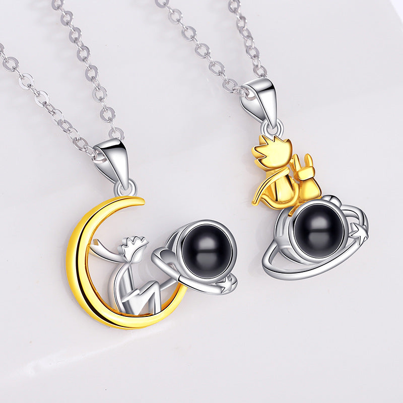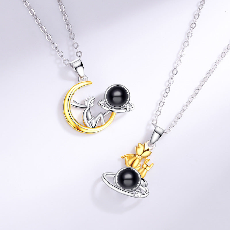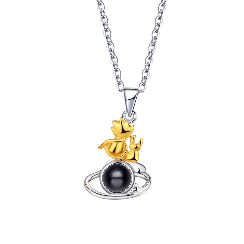 Malý princ ve vesmíru a liška projekce náhrdelník pár s obrázkem uvnitř