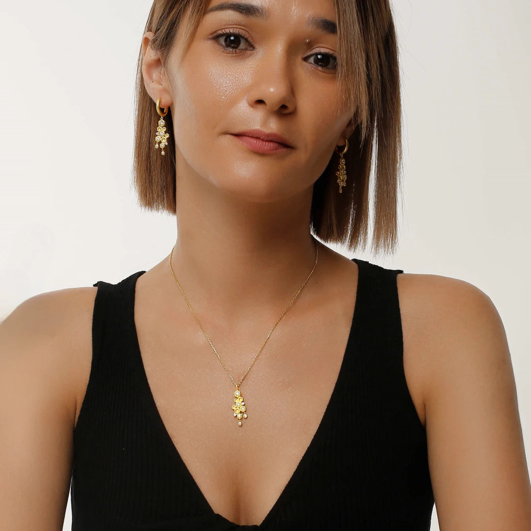 Stel je de koele bries voor die tussen een bos Jasmijn waait ... Hoe heerlijk zijn de geur en de zachte streling van de wind over je huid en haar! Deze sieradencollectie is ontworpen om dit gevoel te associëren met sieraden elke keer dat je het gebruikt. De set is geïnspireerd op jasmijnbloem die in de lente groeit met een heerlijke geur die naar je toe komt met de stromende bries