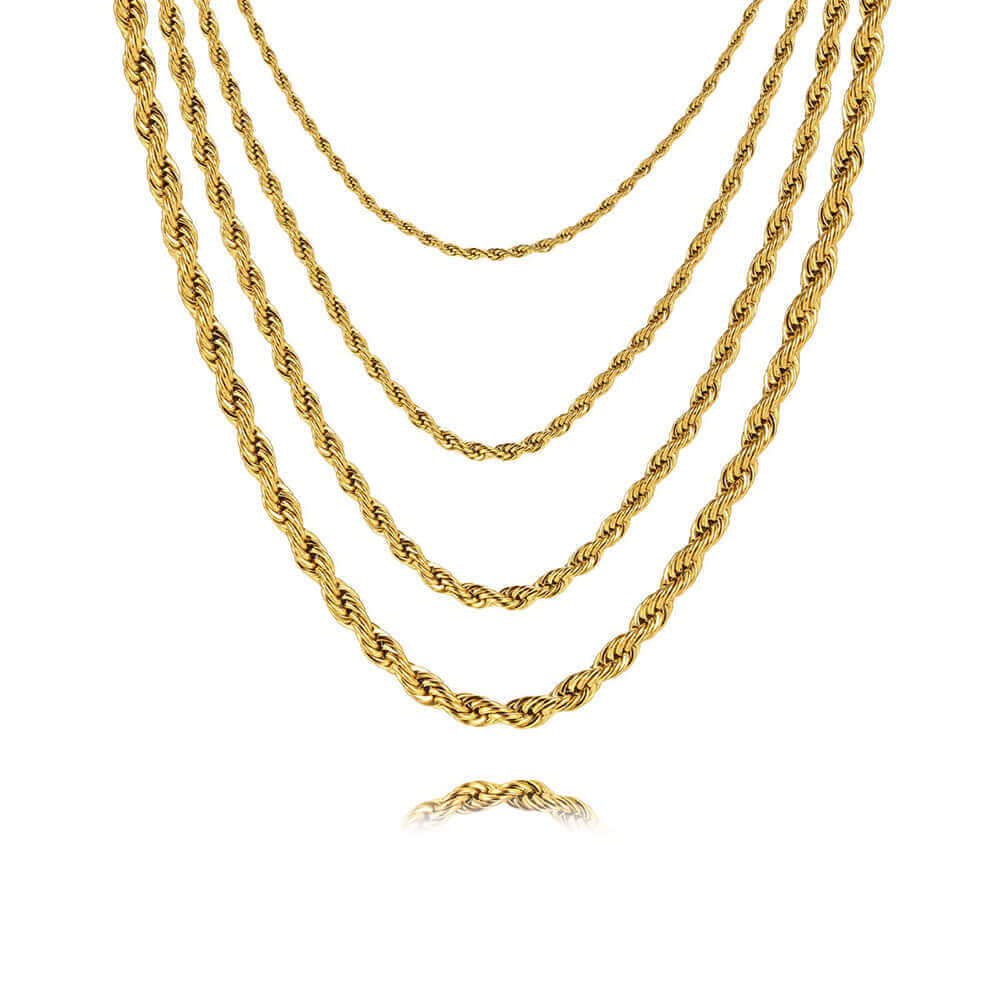 18K Gold Plated Multilayer 2/3/4/5MM Upana 40/45/50/55CM Urefu wa Mnyororo