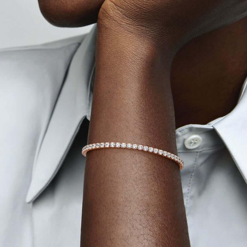 سوار فضي بقصة مستديرة من الذهب الوردي للتنس