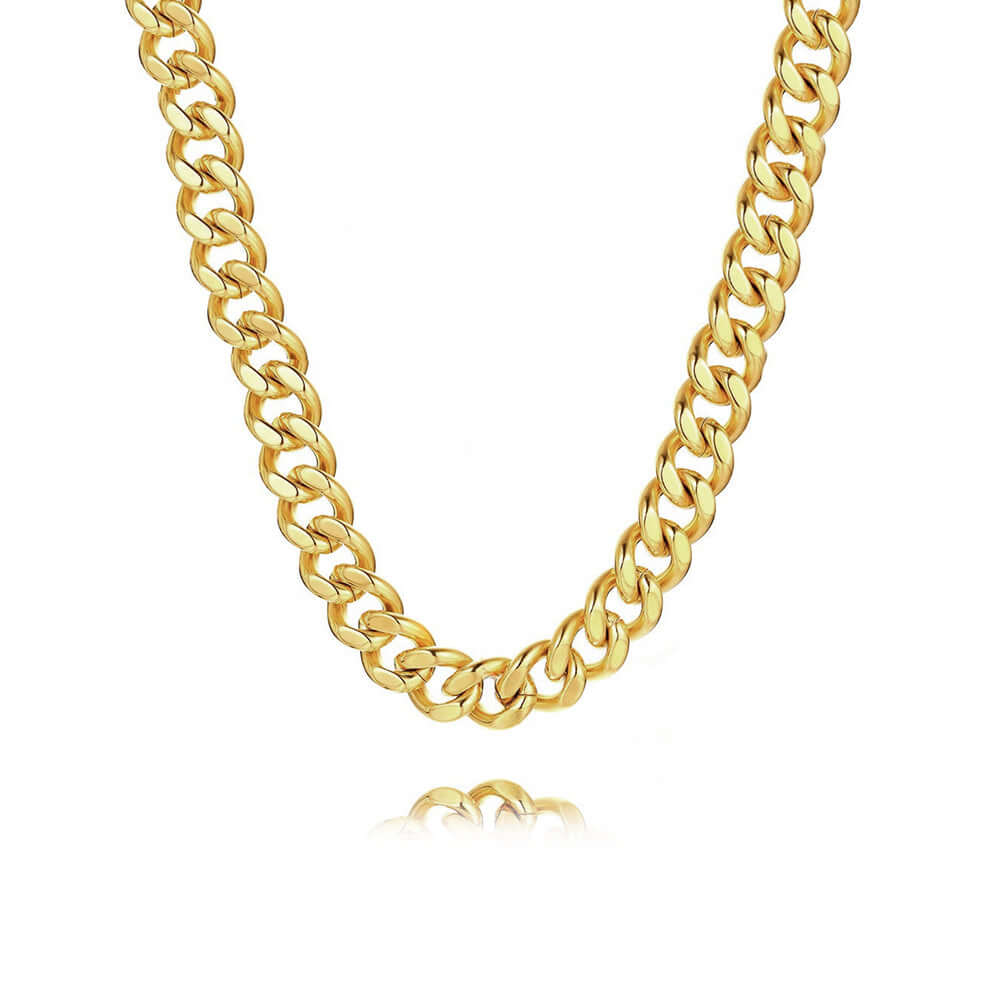 Mnyororo wa Cuba 12/15mm Upana wa 24K Dhahabu ya Mnyororo wa Necklace Chain Bracelet