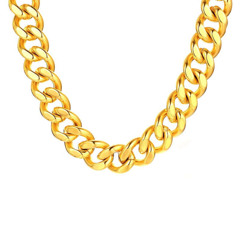 Vaa kipande cha taarifa ambacho hakiwezi kupuuzwa! Chain yetu ya Cuba Necklace / Bracelet ni hakika kugeuza vichwa na mlolongo wake wa dhahabu wa 12/15mm 24K. Fanya alama yako na kumiliki usiku - au mchana - na mlolongo huu wa kuvutia macho. Kwa hivyo glitzy, ni kama una uangalizi wako wa kibinafsi!