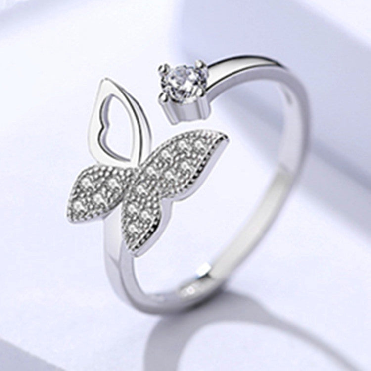 S925 Silver Open Butterfly Toi et Moi Ring