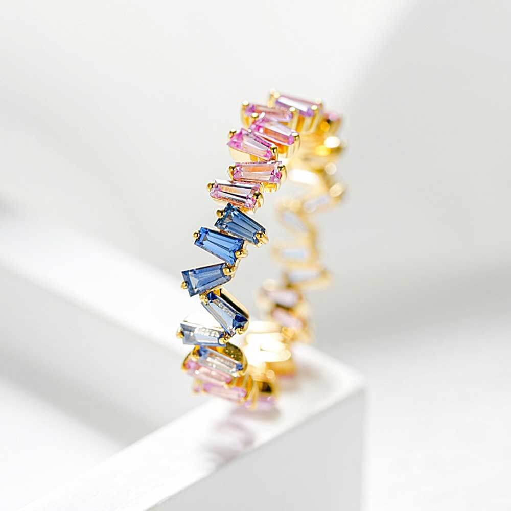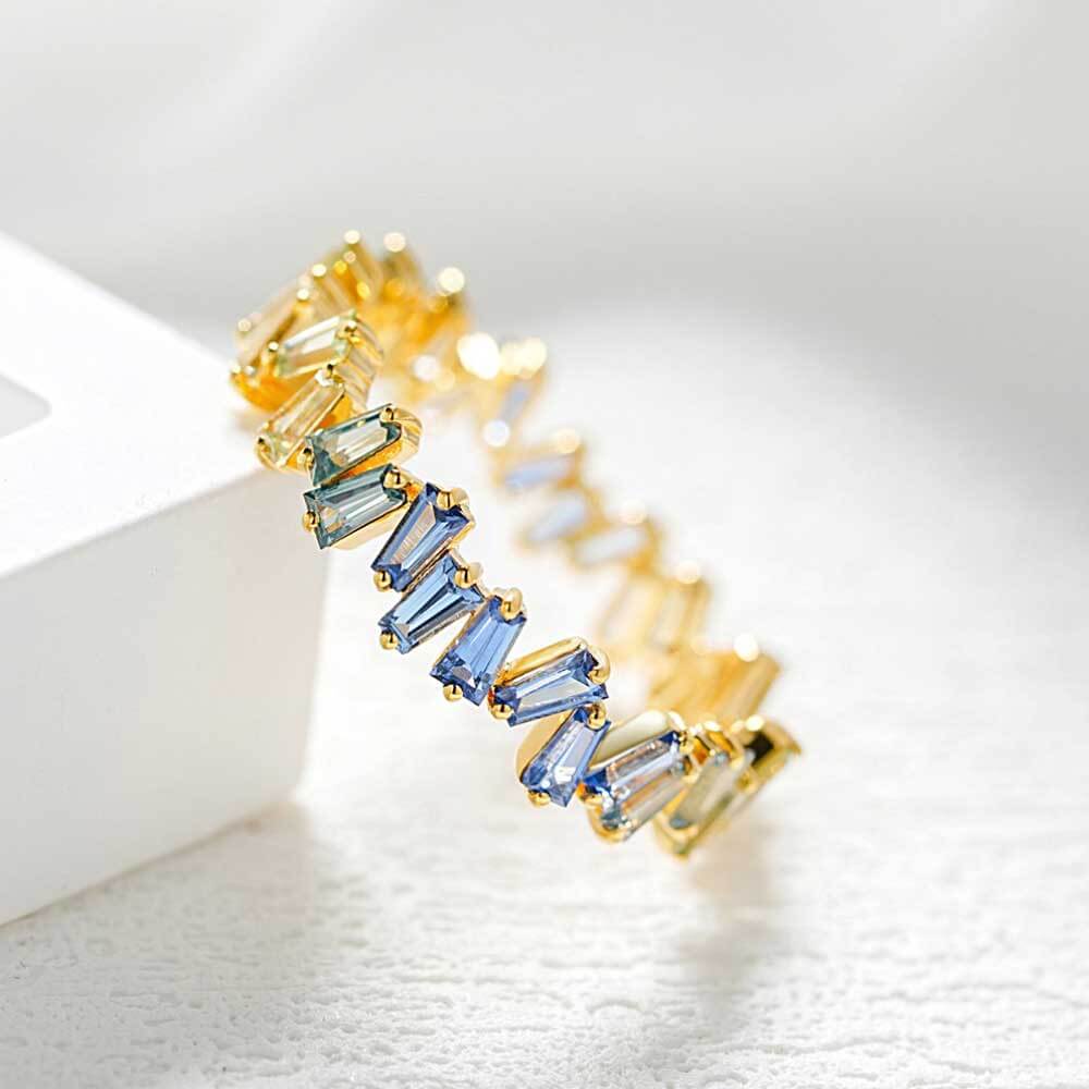 Add a touch of risk and adventure to your jewelry collection with our Solid Gold Irregular Square Colored Sapphire Ring! Made of quality solid gold and featuring a unique, irregular square shape, this ring is a bold statement piece that will elevate any outfit. Dare to be different and stand out with this one-of-a-kind ring!